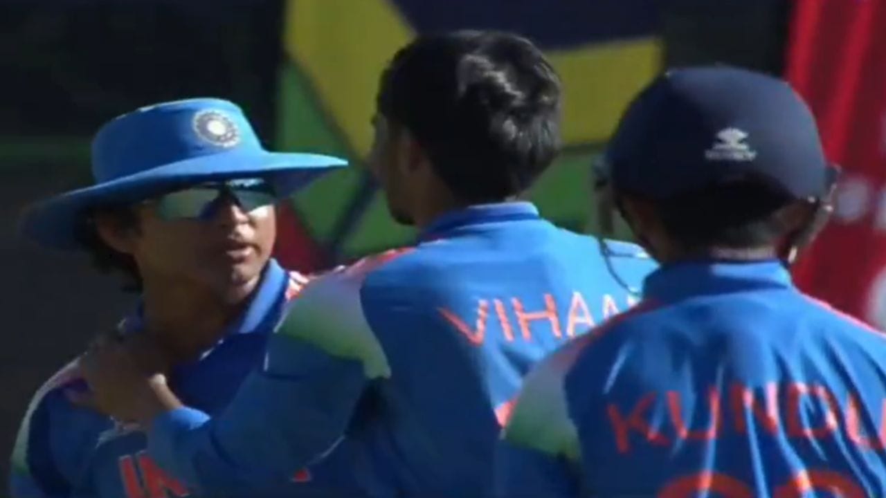 वैभव पाक बल्लेबाज की ओर बढ़ रहे थे लेकिन तभी विहान ने उन्हें देख लिया और वो अपना सेलिब्रेशन छोड़कर तुरंत भागकर वैभव सूर्यवंशी को रोकने लगे. भारतीय स्टार इस दौरान पाकिस्तानी बल्लेबाज को कुछ न कुछ बोले जा रहा था लेकिन फिर टीम के उप-कप्तान ने उन्हें शांत कराया. इस वक्त तक बाकी खिलाड़ी भी वहां पहुंच गए.