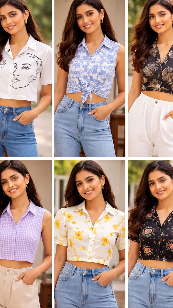 Shirt crop top designs: If you feel like wearing a shirt in summer, but the fabric for it is less, then you can make these 7 stylish crop top shirts in half to a quarter meter of fabric, which will look great on jeans, skirts, palazzo pants.