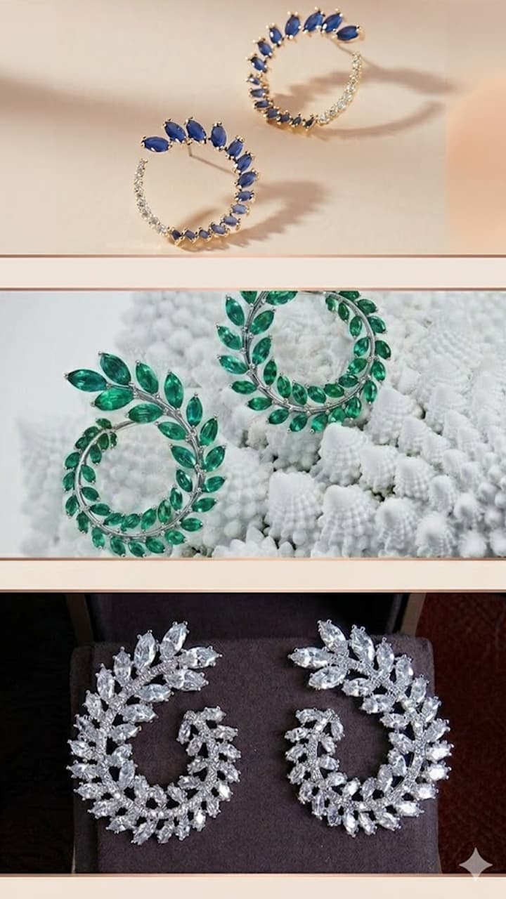 These earrings made in yellow gold are very attractive. White and yellow stone work has been done in it. Big size stone dangler with studs is perfect for young girls.