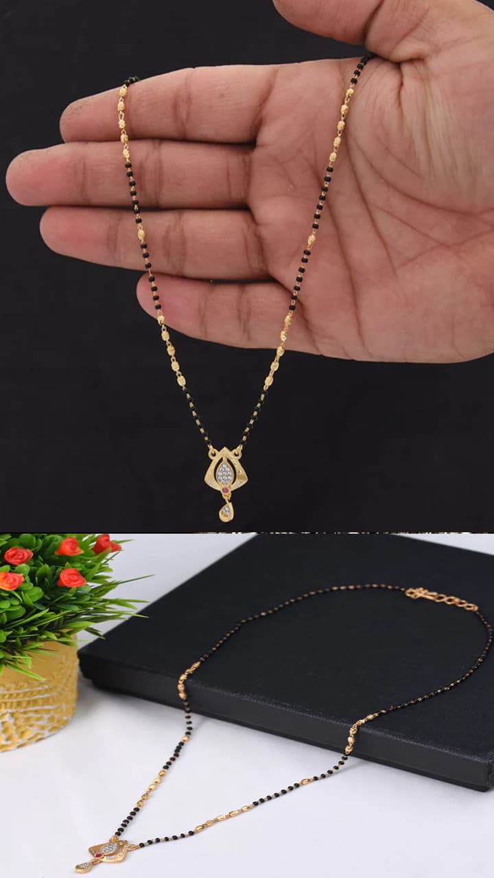 If you are looking for long mangalsutra with pendant design, then you can check this out. It creates a very elegant look with every type of outfit.