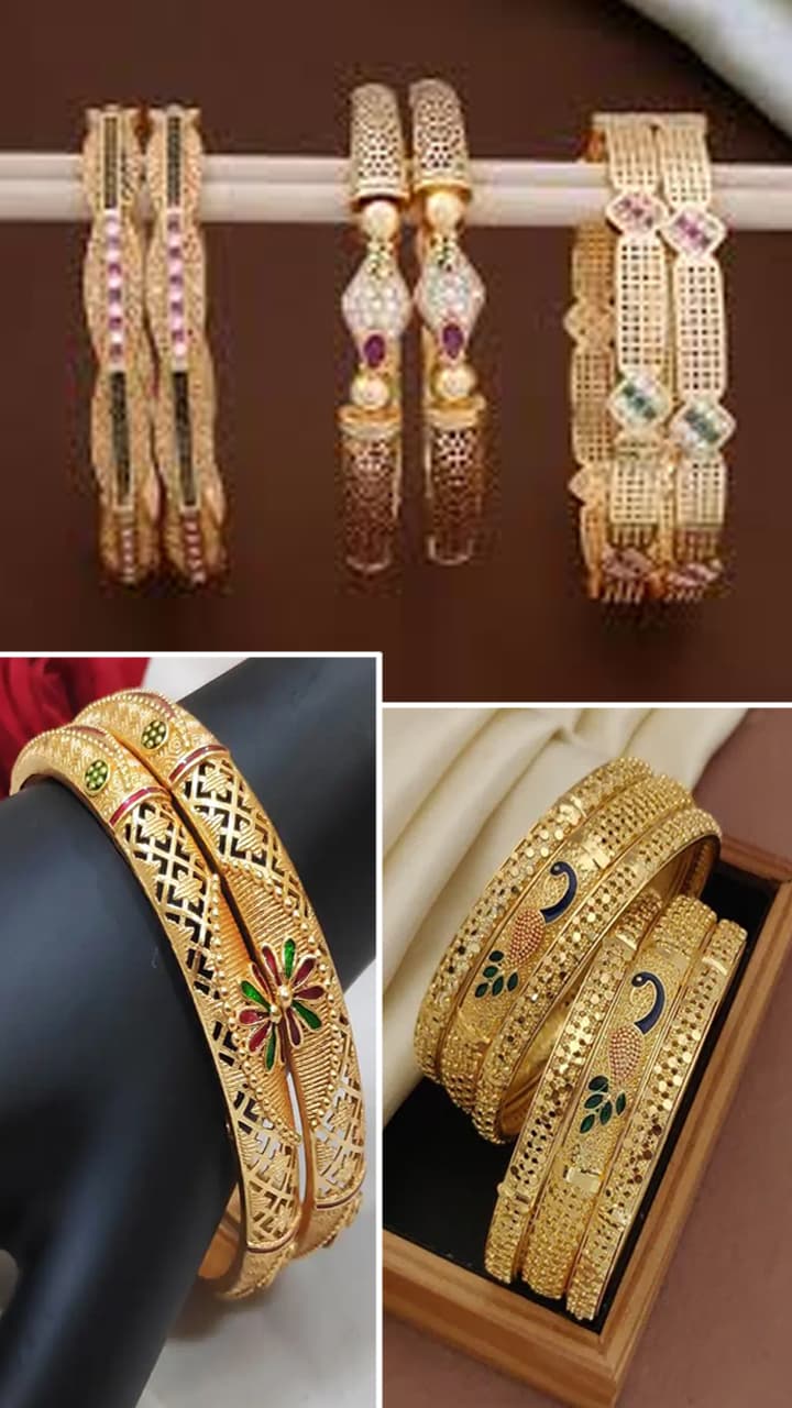 Gold plated brass bangles are a smart option. In a budget of around 2K, you will get such designs which will give grace like 2 tola gold and are perfect for daily use. See 7 design ideas.