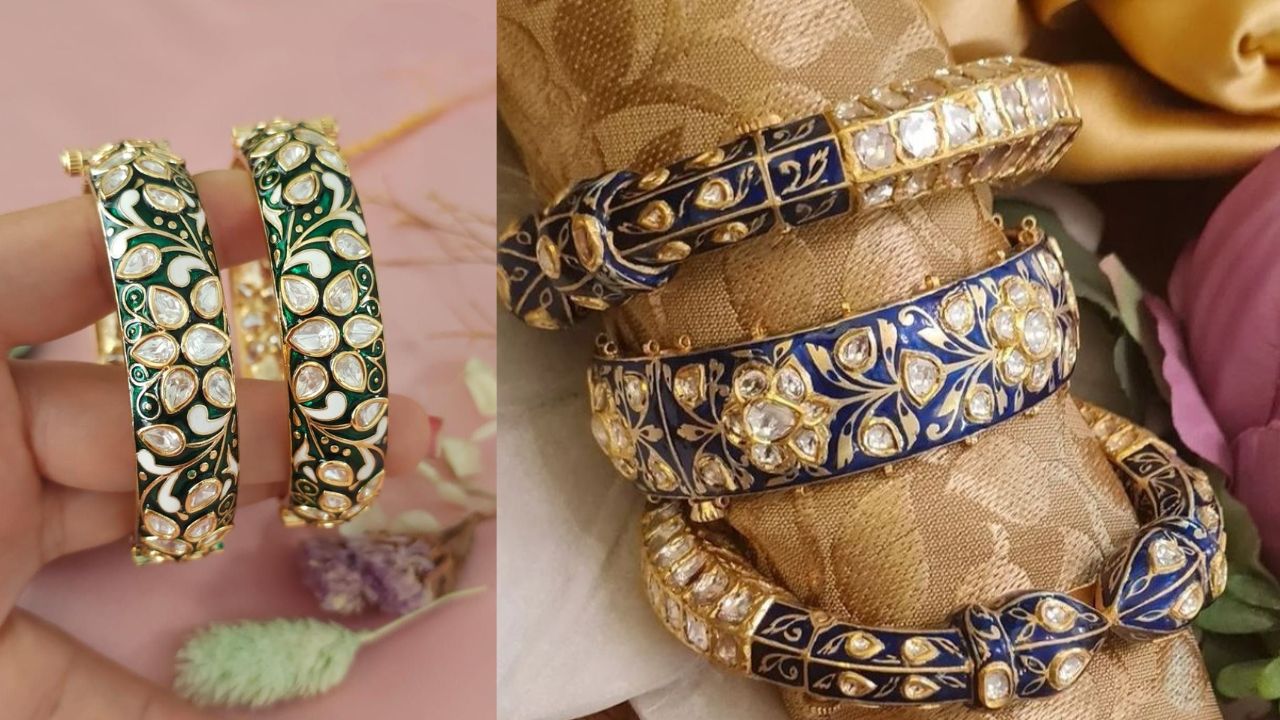 Traditional Meenakari Kada: Karva Chauth has arrived and this time if you don’t have the budget for gold, then ask for a Meenakari bangle as a gift from your husband. This design of bangle will give a royal look to your hands and will look very beautiful after wearing.