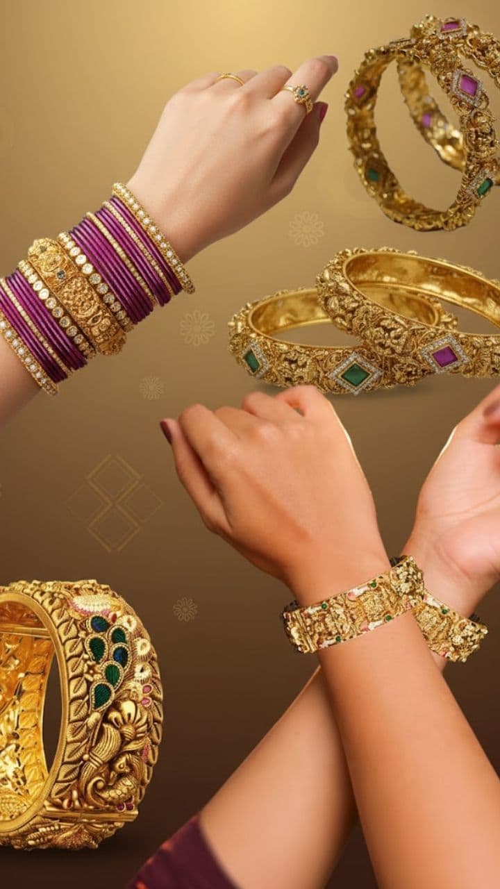 5 designs of temple bangles, the tinkling and shine of glass bangles will be amazing. 5 Temple Design South Indian Bangle Set