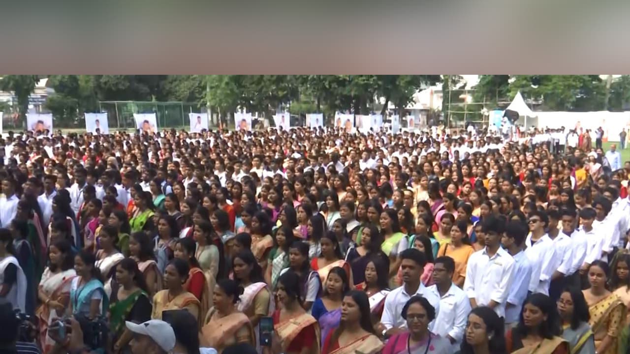 A crowd of nearly 5000 people paid tribute to Bharat Ratna Dr Bhupen Hazarika by performing the song ‘Manuhe Manuhor Babe’ at the Latasil playground in Guwahati on the occasion of the 14th death anniversary of the singer.