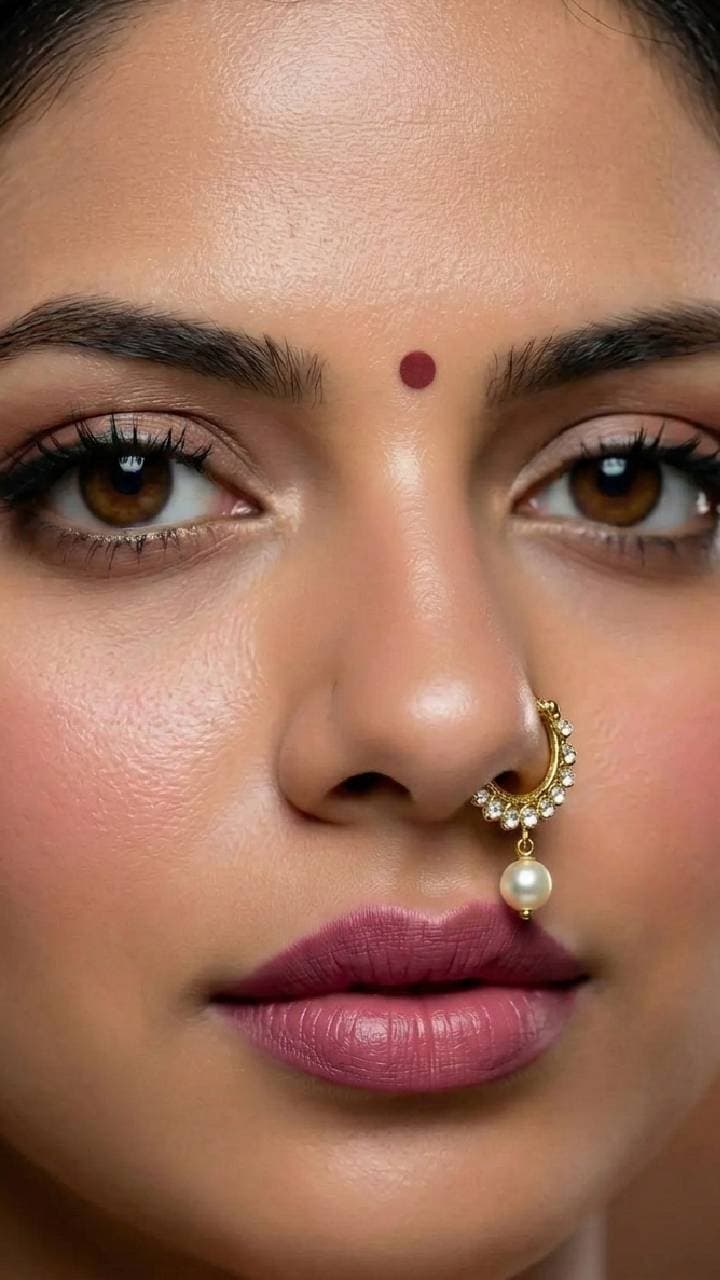 You can buy a nose ring adorned with white pearl in just half a gram (0.5g) gold and gift it to your daughter-in-law on the first Navratri or Gangaur. Bell pendant has been used in such nose rings.