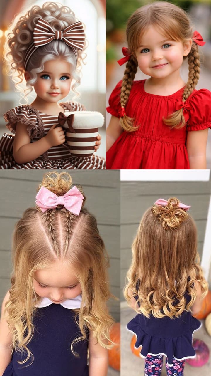 If your daughter’s hair is short then making this hairstyle by making a simple double braid at the crown and tying it together with a bow on top is the best option. This will give a very beautiful look to your daughter.