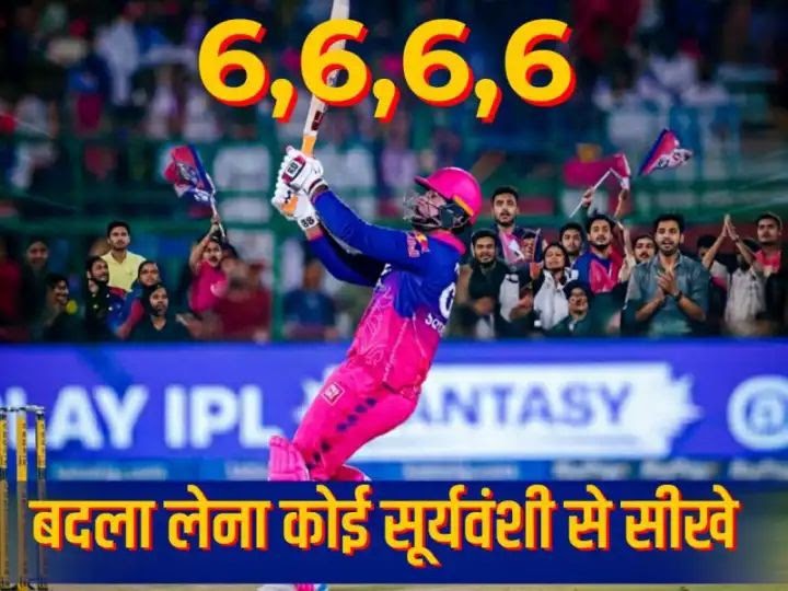 In the match against Sunrisers Hyderabad, Vaibhav Suryavanshi broke a 17-year-old record by hitting 4 sky-high sixes in the first over itself. Earlier in 2009, while playing for KKR, Naman Ojha had hit 3 sixes in the first over against Rajasthan. Vaibhav Suryavanshi has now gone one step ahead of him. In this over of Prafulla Hinge, he has registered his name in IPL history by hitting 4 consecutive sixes. In the match against Sunrisers, Vaibhav Suryavanshi came on strike on the second ball. The first ball was a dot and after that he hit four consecutive sixes, destroying Prafulla Hinge. Vaibhav Suryavanshi did not stop here. In the next over, he hit a six on the first ball of Pat Cummins.