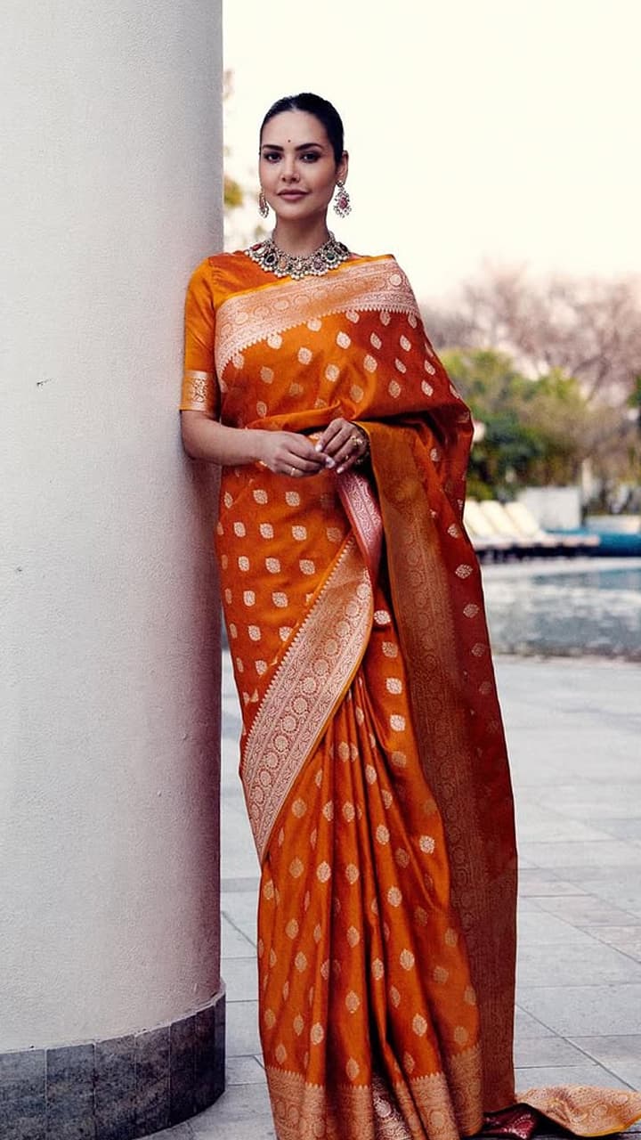 7 beautiful designs of Banarasi-Kanjeevaram saree, copy from Esha Gupta’s closet. Esha Gupta Banarasi And Kanjivaram Silk Saree Designs