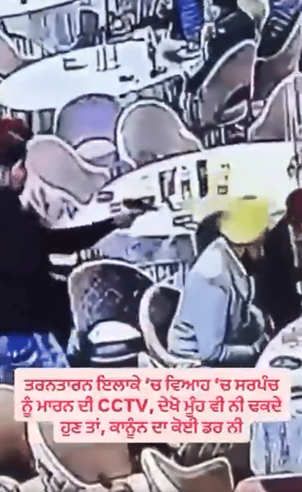 The victim has been identified as Jarmal Singh who is the sarpanch of Valtoha village in Tarn Taran district. He was attending a wedding ceremony at a private resort near the Verka bypass when the shooting took place.