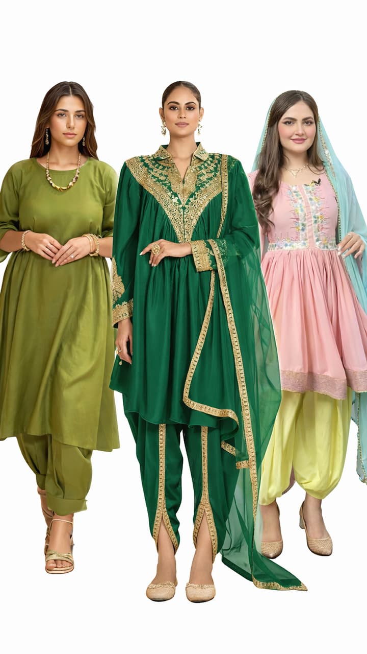 Afghani suit has a wide and pleated salwar along with kurti, which is called Afghani salwar. It is very comfortable and suits every body type. You choose such Afghani salwar suit.