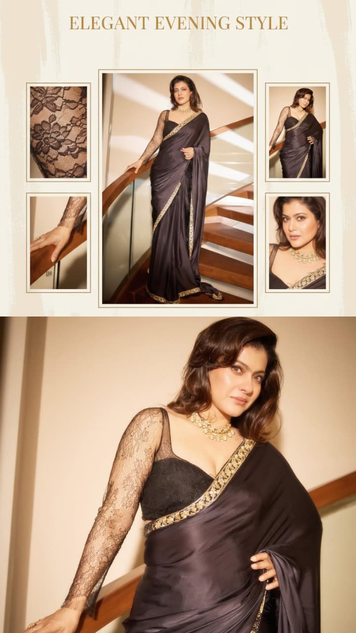 Opt for light lace work georgette saree in the range of Rs 700-1000. Kajol has chosen a sleevecut blouse, if you want, wear it with a netted pattern. Along with this, stone cut earrings will look sassy.