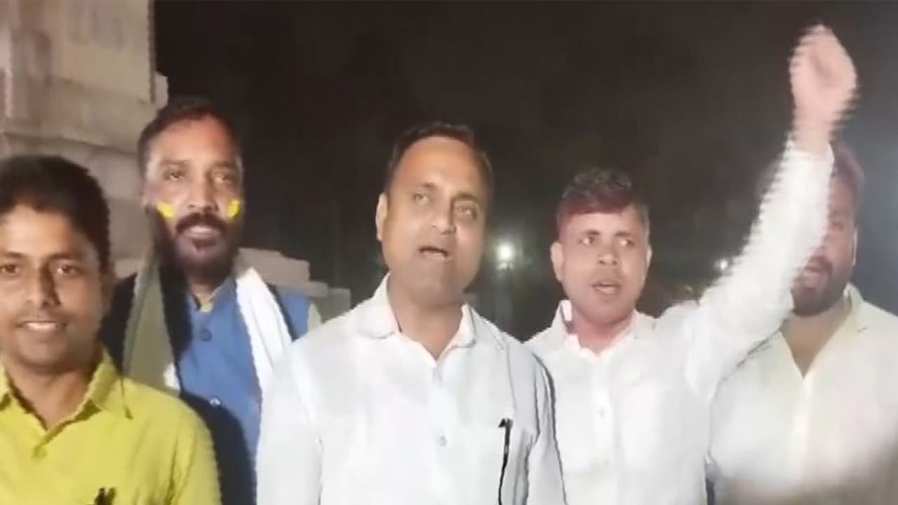 Janta Dal (United) youth workers on Wednesday gathered outside the residence of Bihar Chief Minister Nitish Kumar, following speculations that he might move to the Rajya Sabha, leaving the Chief Minister’s post.