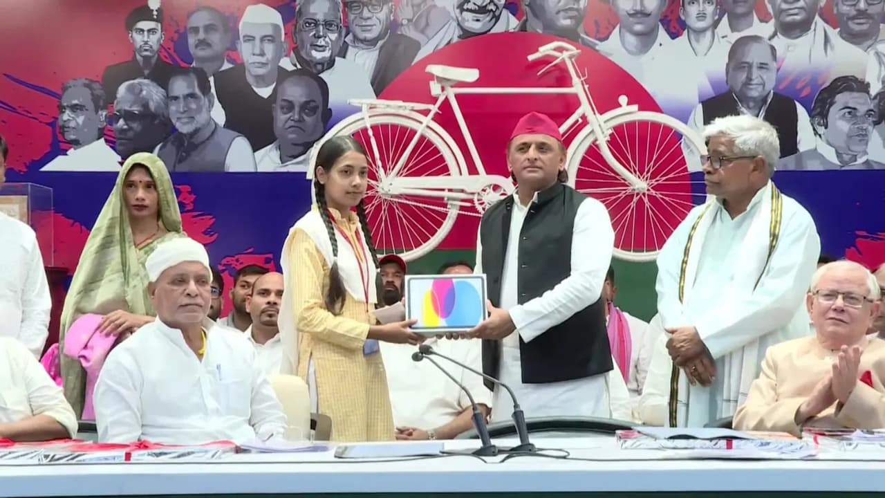 Akhilesh Yadav ipad Award Toppers: This time in the education system of Uttar Pradesh, daughters have once again proved that no obstacle can stand in front of hard work and dedication. While the UP Board 2026 results recorded a record pass percentage, the toppers’ daughters flaunted their talent across the state. In this series, National President of Samajwadi Party Akhilesh Yadav organized a special felicitation ceremony in the party office, where the topper daughters of class 10th and 12th were honored with iPads. Kashish Verma of Sitapur, Anshika Verma of Barabanki and Shikha Verma of Sitapur were specially honored in this program.