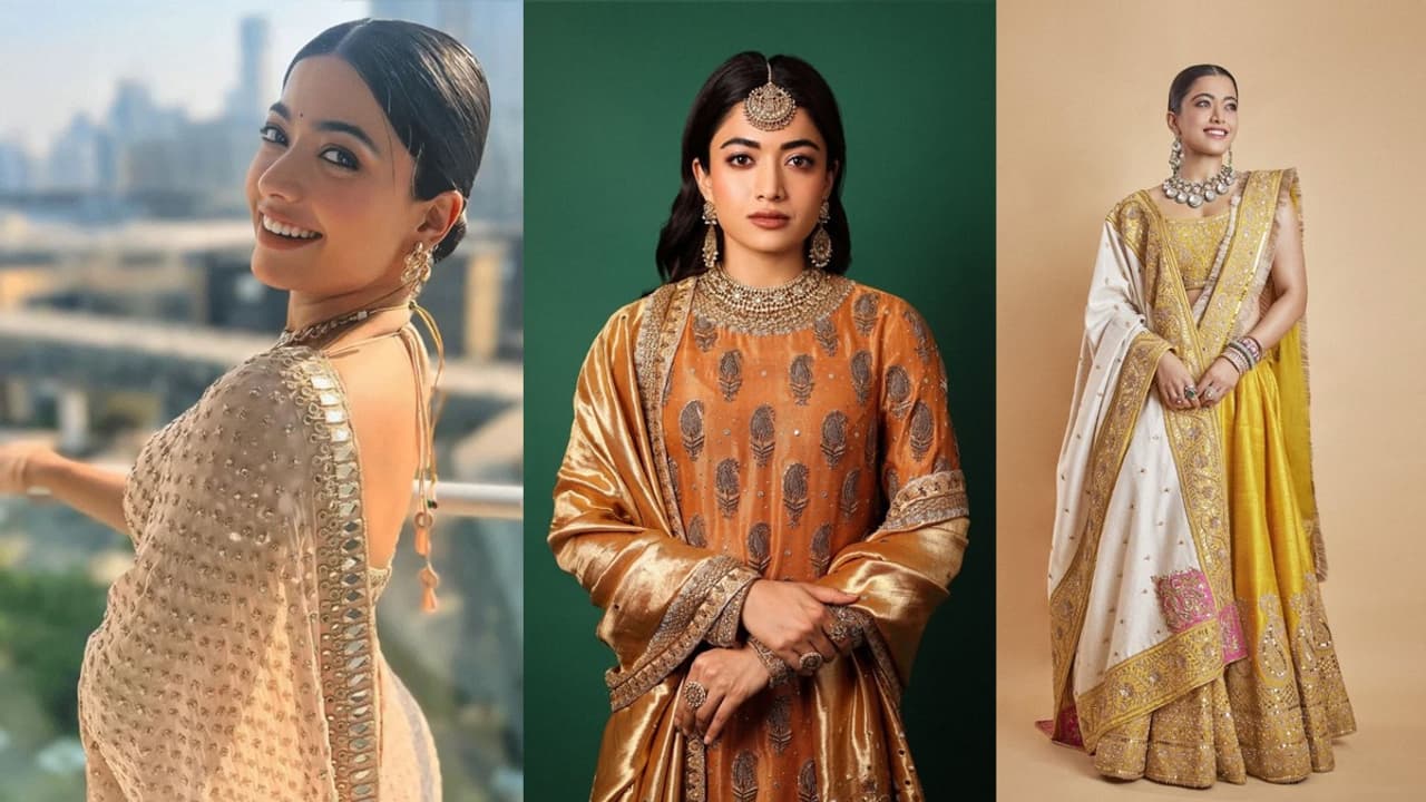 <p>Rashmika Mandanna’s affinity for yellow and golden ensembles this festive season only adds to her “golden girl” aura, a reflection of both her cinematic dominance and her luminous, ever-growing appeal across audiences.</p><img><p>On a day that celebrates prosperity, new beginnings, and all things gold, Rashmika Mandanna feels perfectly in sync with the spirit of Akshaya Tritiya. Widely regarded as the Pan-India No.1 heroine today, the actor is riding high on a streak of back-to-back box office successes, making her presence as powerful off-screen as it is on it. </p><img><p>Known for her effortless charm and radiant style, Rashmika’s affinity for yellow and golden ensembles this festive season only adds to her “golden girl” aura, a reflection of both her cinematic dominance and her luminous, ever-growing appeal across audiences.</p><img><p>Rashmika Mandanna radiates elegance in this traditional look, centred around a vibrant mustard-yellow saree with subtle striped detailing, making it a perfect pick for Akshaya Tritiya’s golden spirit. The outfit exudes a warm, festive glow with a sophisticated gold choker necklace featuring green stone embellishments and matching floral-inspired stud earrings.</p><img><p>Rashmika Mandanna stuns in this high-glam contemporary ethnic look, featuring a shimmering bronze-gold lehenga set—ideal for embracing the opulence of Akshaya Tritiya. The outfit is defined by its heavy sequin work and metallic finish, creating a striking "liquid gold" effect under the spotlight.</p><img><p>Rashmika Mandanna’s breathtaking look in this ethereal saree, featuring intricate threadwork and a striking mirror-work border, perfectly captures the festive elegance of Akshaya Tritiya. The backless blouse with delicate tassel detailing adds a touch of modern allure to the traditional silhouette. A sleek, centre-parted low bun paired with a soft bindi and "no-makeup" makeup look enhances its timeless appeal.</p><img><p>Rashmika Mandanna exudes a majestic aura in this rich burnt-orange and gold ensemble—another stunning option for Akshaya Tritiya dressing. Heavily textured with traditional paisley embroidery and a shimmering metallic dupatta, the look is elevated by opulent, oversized antique-gold jewellery, including a prominent maang tikka and a matching statement choker. </p><img><p>With her hair styled in soft waves and a muted, earthy makeup palette, she achieves a striking balance of heritage craft and modern bridal inspiration.</p>