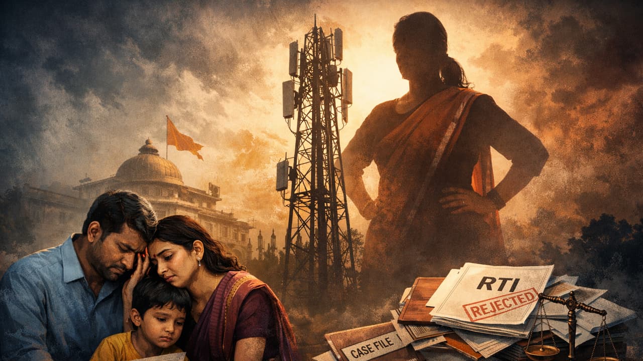 In Narmadapuram, BJP councilor Vandana Chutile grabbed her family’s land by installing illegal telecom towers. The victim’s family has been struggling for justice for years due to wrong answers to RTI and disappearance of records by Naib Tehsildar. Read the entire case and the family’s story.