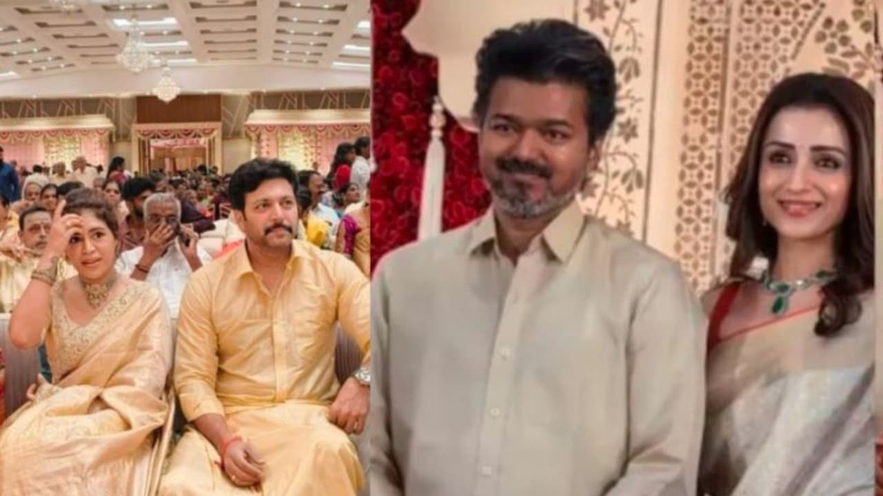 Amid affair rumours, Vijay and Trisha Krishnan attended a wedding reception together in Chennai, arriving in the same car and matching outfits, drawing comparisons with the recent buzz around Jayam Ravi and Kenisha Francis