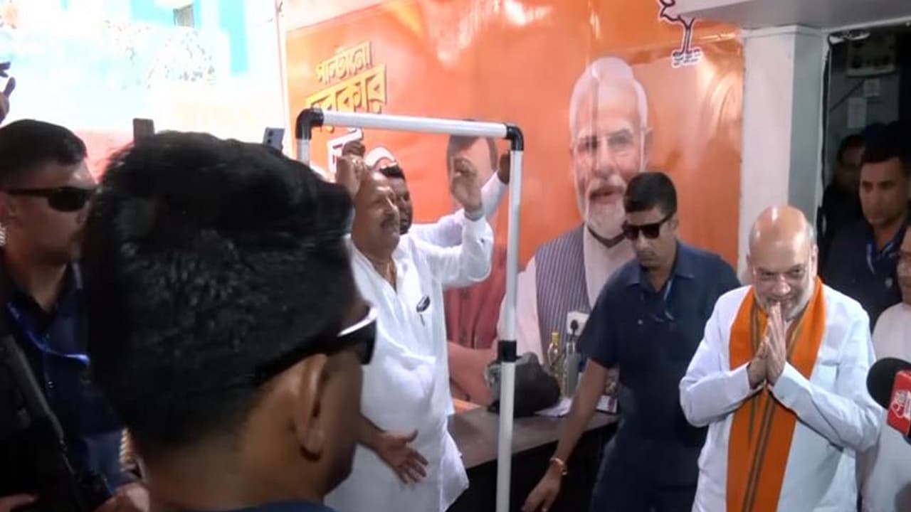 Union Home Minister Amit Shah on Thursday held a meeting with Bharatiya Janata Party (BJP) leaders at the party office in Kolkata, ahead of the second phase of West Bengal Legislative Assembly elections.