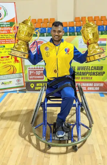 Earlier this month, at the Atal Bihari Vajpayee Training Centre for Disability Sports, Gwalior, Sadashiv Shinde was part of the winning team from Maharashtra, at the 9 th Wheelchair Basketball Championship, to win two gold cups.