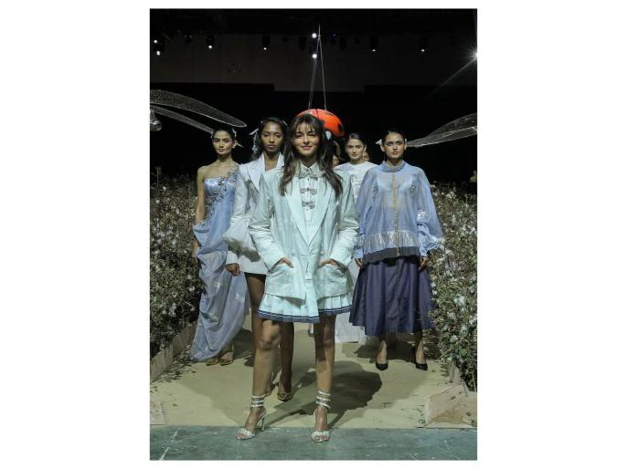 Signature hand embroidery remains central to the collection, reinforcing the atelier’s emphasis on human labour, precision, and intricate surface storytelling. Design motifs drew inspiration from the cotton ecosystem, including cotton buds, florals, and insects, and reflected the realities of cotton cultivation.