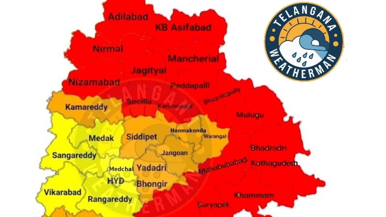 The sun is already showing its full power in the combined Adilabad district and a few others. From tomorrow, this heat will hit its peak. The Weatherman says districts like Adilabad, Komrambheem Asifabad, Nirmal, Mancherial, Jagtial, Nizamabad, Sircilla, Peddapalli, Karimnagar, Bhupalpally, Mulugu, Bhadradri Kothagudem, Mahabubabad, Khammam, Suryapet, Nalgonda, Gadwal, and Wanaparthy will see temperatures between 43 and 45 degrees Celsius. That’s why he has issued a Red Alert for these areas.