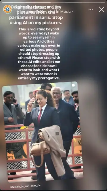 Actor Kangana Ranaut shared an angry post as she reacted to AI-edited photos of her dressed in suits instead of her original pictures dressed in sarees.