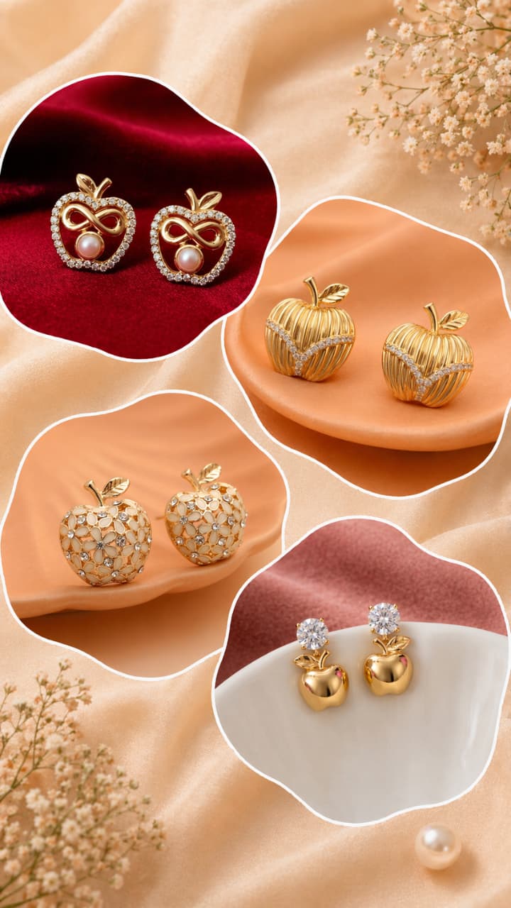 22KT Apple Gold Earrings: If you are bored with bow and pearl earrings, then upgrade your closet and buy Apple Gold earrings, they give a funky and premium look with style. You will look no less than a Bollywood diva wearing this.