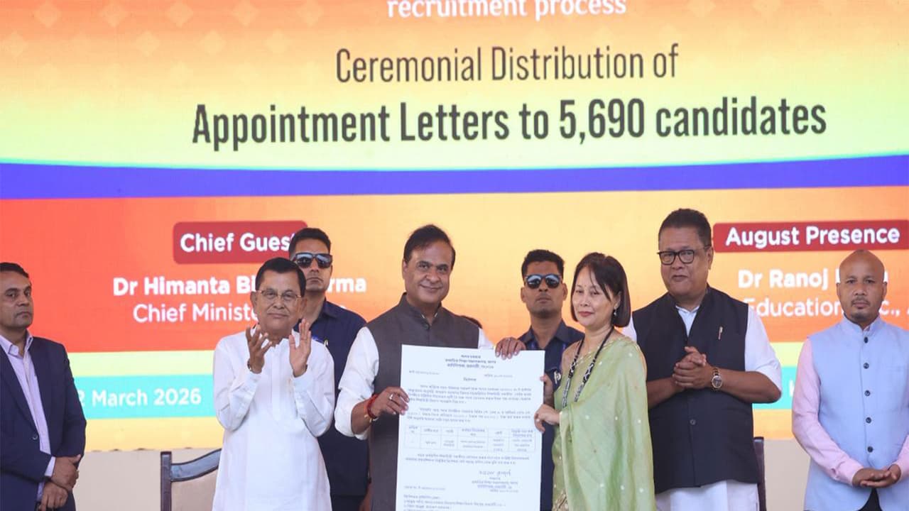 Assam CM Himanta Biswa Sarma distributed 5,754 appointment letters for the Education and Power Departments, bringing the total government jobs under his tenure to 1,64,423. The appointments include teachers, headmasters, and APDCL officers.