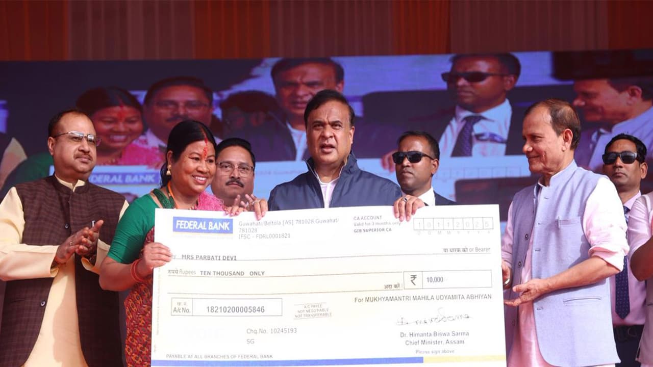 Under the Mukhya Mantri Manhila Udyamita Abhiyan (MMUA), Assam Chief Minister Himanta Biswa Sarma on Friday distributed cheques of Rs 10,000 each to 30,655 enterprising women of the Borsola Assembly Constituency in Sonitpur district.