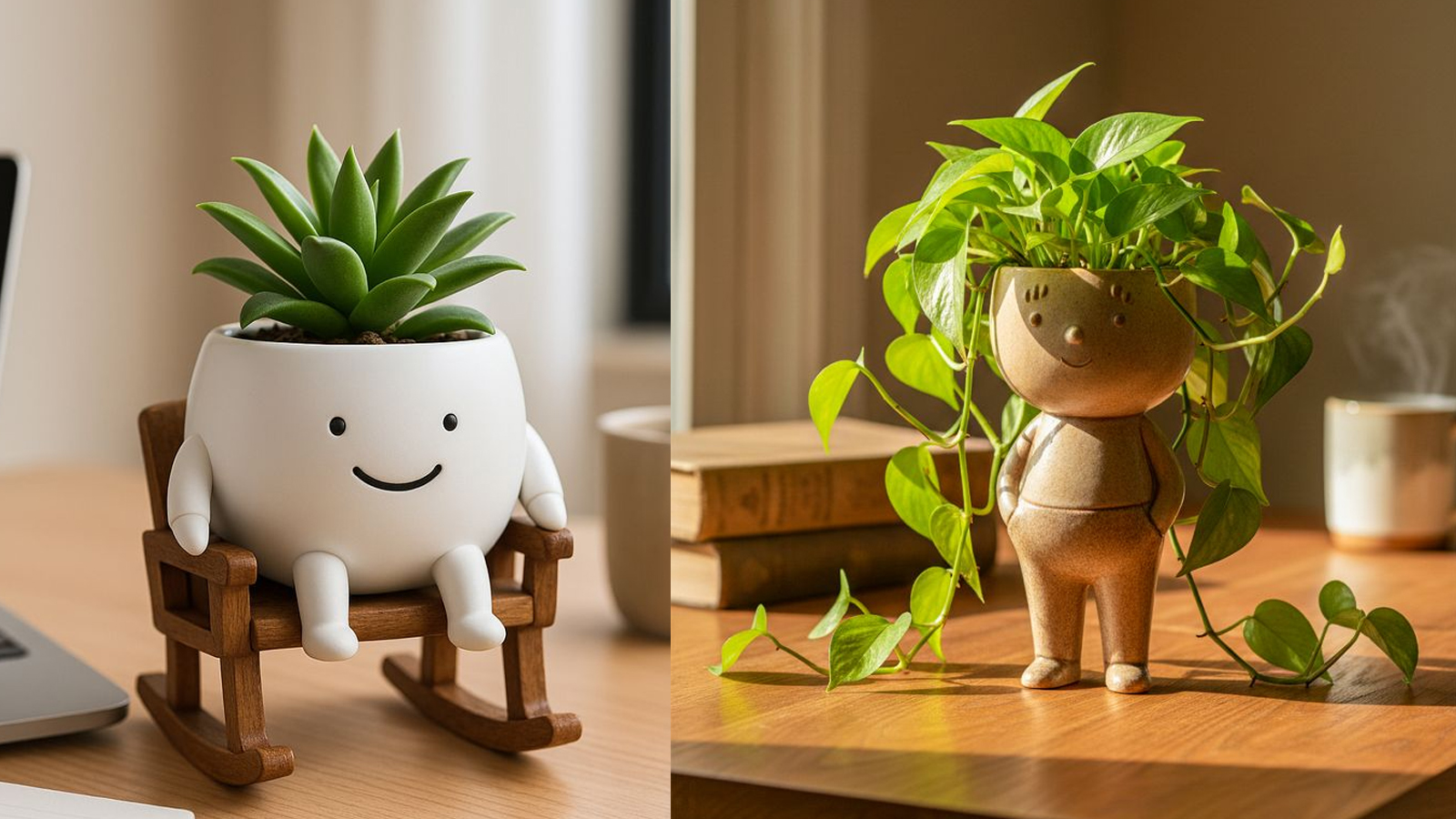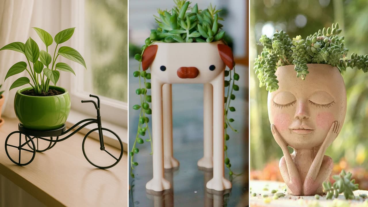 Nowadays pots with face shape or abstract art are very trending. These act as decor pieces and give a unique look to the balcony.