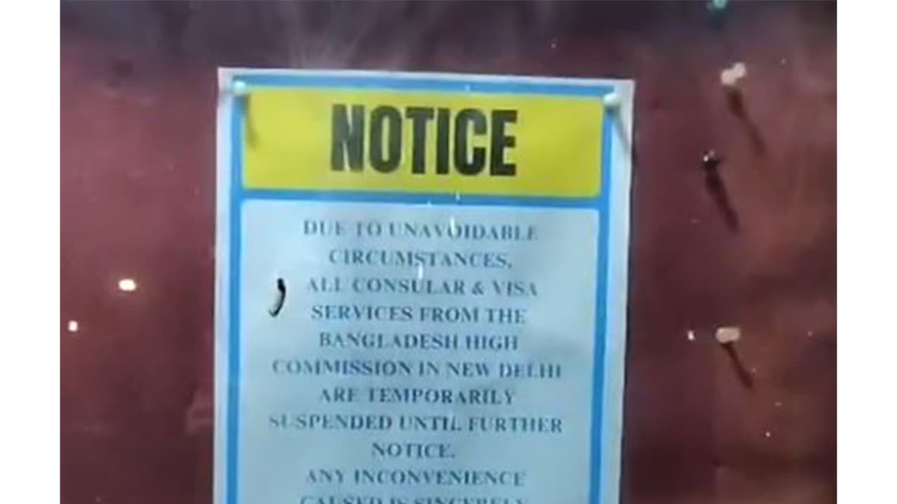 “Due to unavoidable circumstances, all consular and visa services from the Bangladesh High Commission in New Delhi are temporarily suspended until further notice. Any inconvenience caused is sincerely regretted,” Bangladesh High Commission said in a notice.