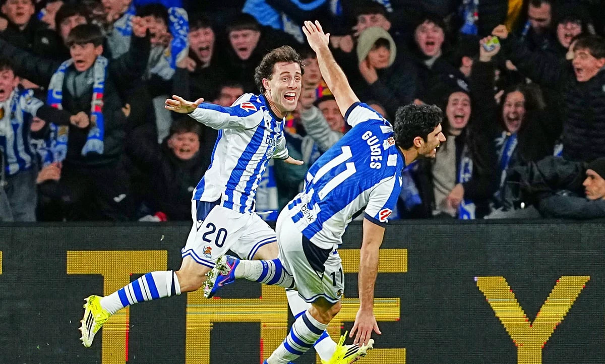 Mikel Oyarzabal put the hosts ahead with a volley by the far post in the 32nd minute. Barcelona equalized with a header from Marcus Rashford in the 70th but a minute later Gonçalo Guedes put Sociedad ahead again with a shot from inside the area.