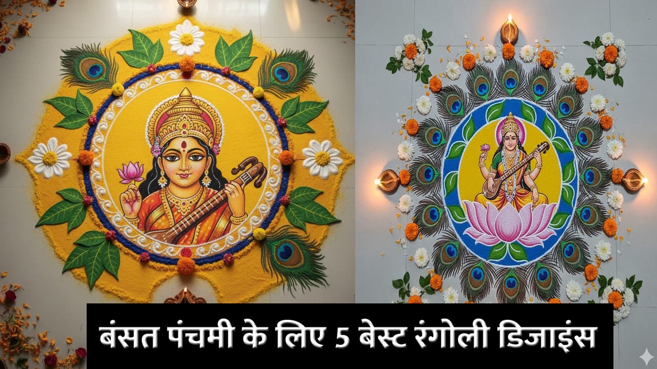 Basant Panchami rangoli Designs: Basant Panchami 2026 will be celebrated this time on 23 January. Mother Saraswati is worshiped on this day. Making rangoli with the idol of the goddess has significance in the school. Here we are showing some rangoli designs which students can make.