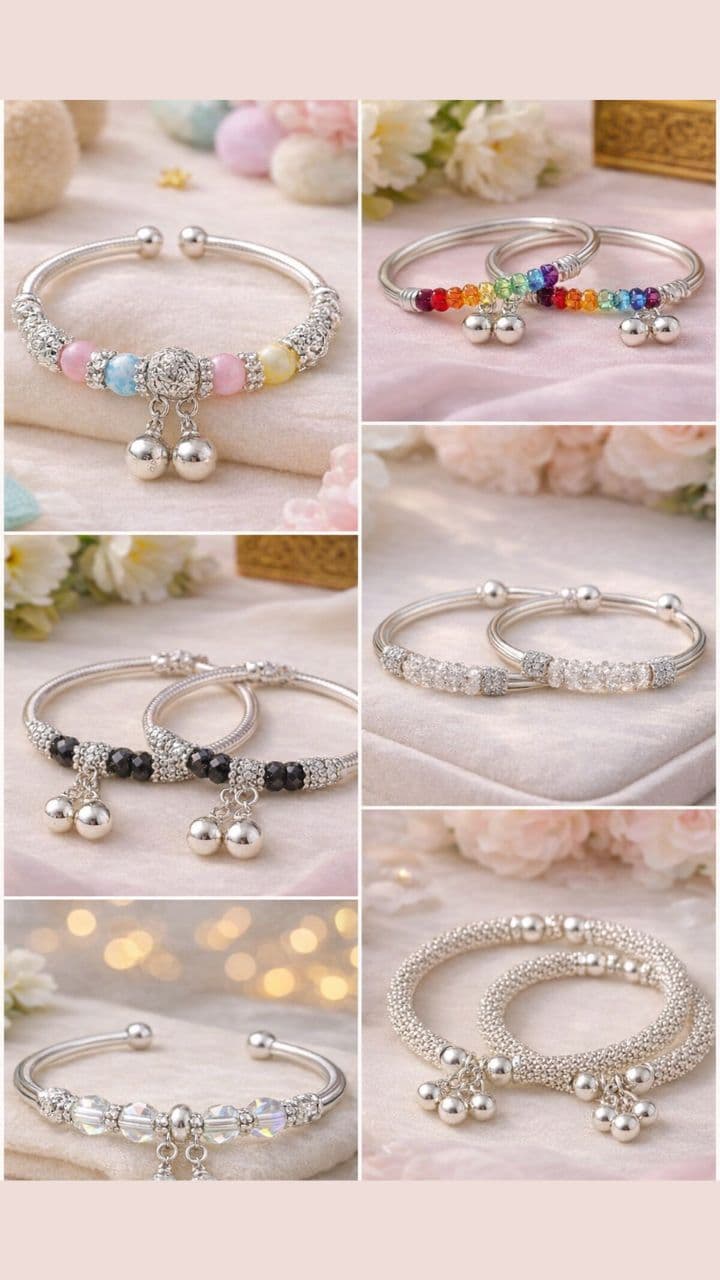 This crystal beads kada design is simple, sober and stylish, it has fine silver beads work, which is making this kada more unique.