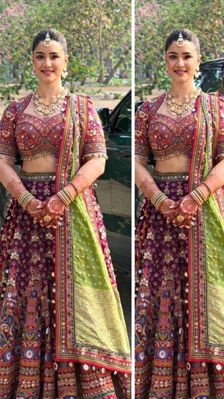 If your brother is going to get married, then try this style of Sara Tendulkar. She wore a Kundan neck piece with a multi-coloured lehenga and braided her hair and applied Maang Tikka.