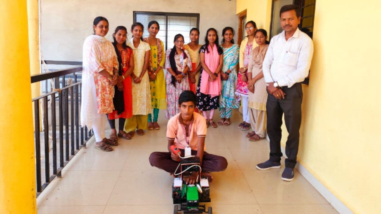 An 8th-grade student from Belagavi, Shrishail Kalagouda Jagadev, built a mini tractor from scrap materials that can pull 80 kg. His innovative project has earned praise from his school and community.