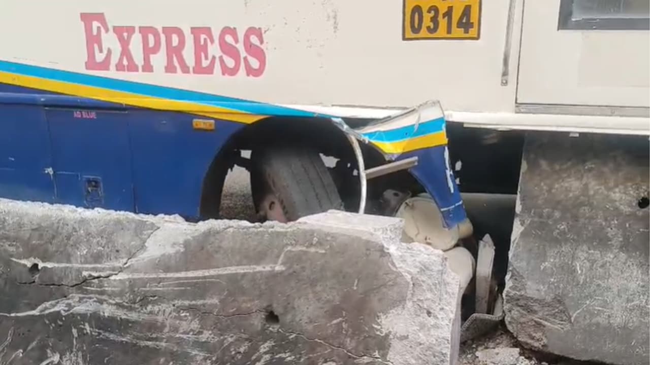 <p>An APSRTC bus travelling from Adhoni to Bengaluru crashed into a divider near Shivananda Circle after the driver lost control. Despite severe damage to the bus, all passengers escaped unhurt.Traffic police cleared the vehicle and launched an inquiry.</p><img><p>A serious accident occurred near Shivananda Circle in Bengaluru when a speeding Andhra Pradesh State Road Transport Corporation bus crashed into a road divider after the driver reportedly lost control.&nbsp;</p><p>The impact of the collision was severe, causing the front wheel and parts of the engine to detach from the bus.&nbsp;</p><p>The force of the crash left the front portion of the vehicle completely damaged, highlighting the intensity of the accident.</p><img><p>The Andhra Pradesh State Road Transport Corporation bus, travelling from Adoni to Bengaluru via Anantapur, was reportedly moving at high speed due to relatively empty roads in the early morning hours. The accident occurred as the bus approached Shivananda Circle, where the driver is believed to have lost control, leading to the crash.</p><img><p>In the horrific accident, all the passengers on board the bus escaped unharmed. It is reported that no one sustained serious injuries. A major disaster appears to have been averted, as there was no loss of life.</p><img><p>Soon after the incident, the High Grounds Traffic Police rushed to the spot, inspected the area, and used a crane to remove the bus that was stuck on the divider. The accident caused some traffic disruption in the area, but as it occurred early in the morning, traffic remained light.</p><img><p>Following the accident near Shivananda Circle, traffic police removed the bus that was stuck on the divider by clearing a portion of it. Preliminary findings suggest that driver negligence may have caused the accident. The traffic police have conducted an inquiry into the incident.</p>