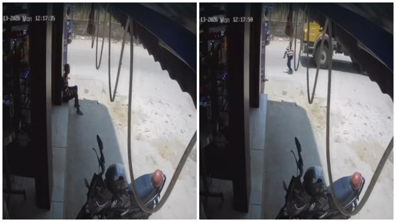 The tipper lorry, bearing registration number KA-51-AM-6579, ran over him, resulting in his death on the spot. The entire incident was captured on a nearby CCTV camera. Officials stated that the footage confirms the sequence of events, although the visuals are disturbing.