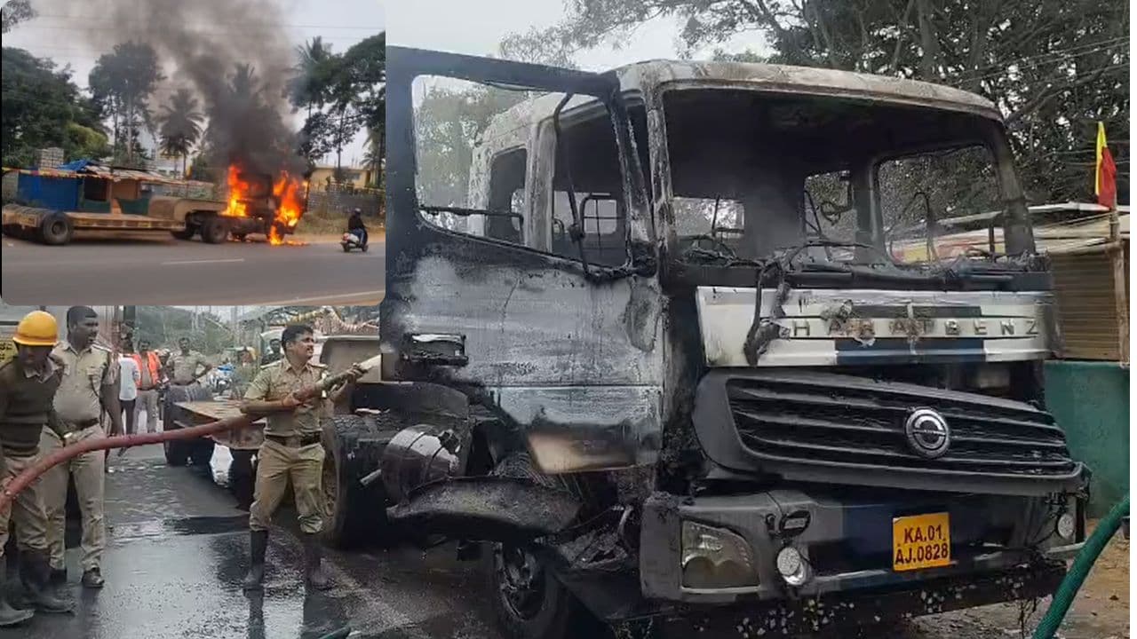 In a shocking incident that created panic among locals, a lorry driver allegedly set his employer’s vehicle on fire after not receiving his salary for nearly two to three months. The dramatic episode unfolded near the Somanahalli Toll on the Bengaluru–Kanakapura main road on Sunday afternoon. The sudden blaze drew the attention of commuters and residents in the area, prompting an immediate call to the fire brigade.