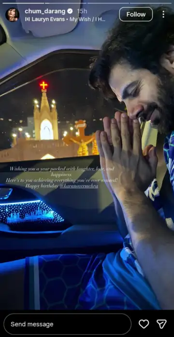 Meanwhile, Chum Darang took to her Instagram stories to share a picture of Karan Veer praying with folded hands outside a church. In her caption, she wrote, “Wishing you a year packed with laughter, love, and happiness. Here’s to you achieving everything you’ve ever wanted! Happy birthday @karanveermehra.”