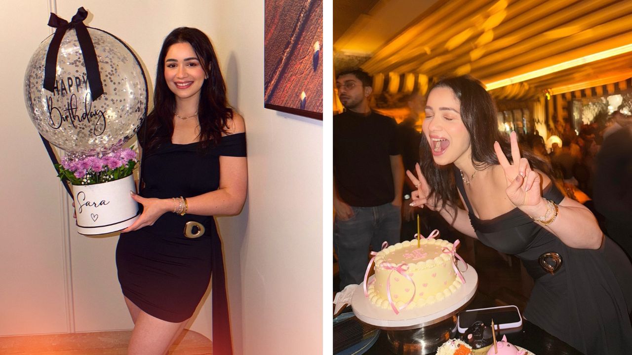 This short dress of Sara has a belt on the waist, which is giving it a trendy look. Along with this off shoulder dress, Sara has also done nude make-up and has kept her hair open. Sara Bala is looking beautiful in this look.