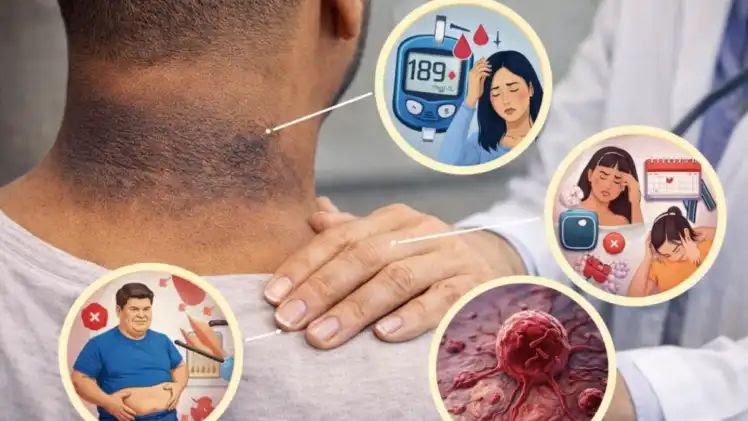 Dark and velvety spots on the neck are often associated with insulin resistance. In this situation, the body is not able to use insulin properly, due to which the blood sugar level starts increasing. This can further lead to type-2 diabetes. If there are also symptoms like weight gain and fatigue, then immediate examination should be done.