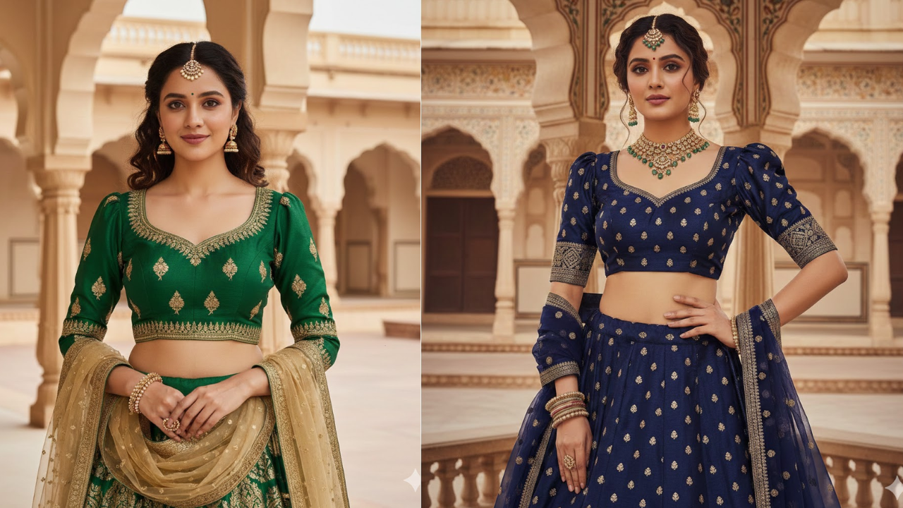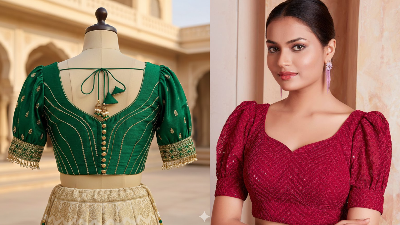 Princess cut blouses are known for their wavy look. Here a cleavage long pattern has been created combining deep sweetheart + V neckline. Along with this, Puff Sleeve with tight fitting is completing the look. If you want to add a touch of fashion along with traditional then you can make this option. Both the blouses have zari, thread and floral bell-buti, while the neckline has gota-patti border detailing. You can get a rich and wedding look by teaming it with a plain saree. Such ready made blouses will also be available for up to Rs 1000.