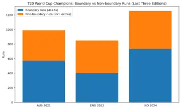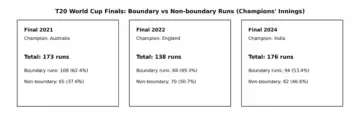 Australia 2021 and India 2024 were more consistently boundary-loaded – but even they carried huge non-boundary tallies. That is the base layer that keeps innings alive when boundaries don’t come in clusters.