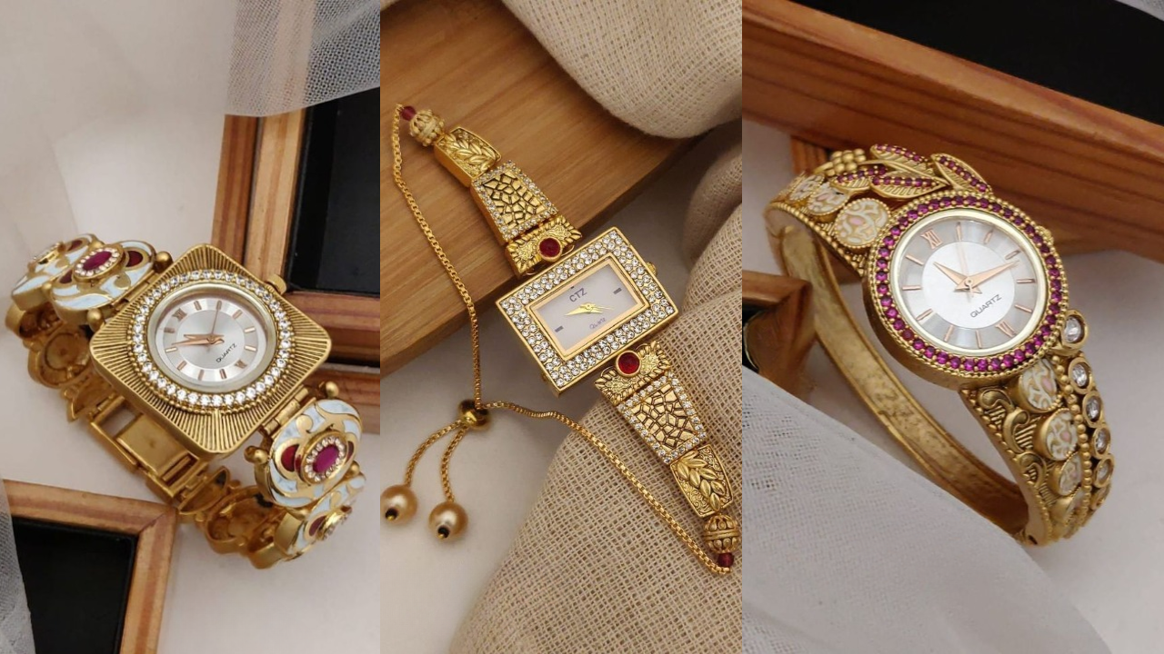 Bracelet Watch Designs: Jewelery plays a big role in enhancing the beauty of women by 1% to 100 times. No wedding party is complete without it. If you too can manage by wearing gold necklace, gold bangles and earrings, then it is time to give a new twist to fashion. Today we have brought for you a very unique and fancy styled bracelet watch, which will shine from a distance along with the complete absence of bracelets and will catch everyone’s attention. So let us know about it in detail.