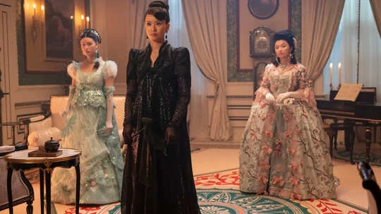 Lady Araminta Gun is never seen in colours and remains dressed head to toe in black. The twice-married and twice-widowed Araminta is similar to the evil stepmother from the Cinderella tale. As the show begins, she makes it known that she has two daughters ready to be married, and it is obvious that her older daughter, Rosamund, is her favourite. She mistreats and makes her a maid who is more like a slave, by making her work from morning to day. Araminta is ambitious and wants to align with a powerful and titled family, so who better than the wealthy and powerful Bridgertons?