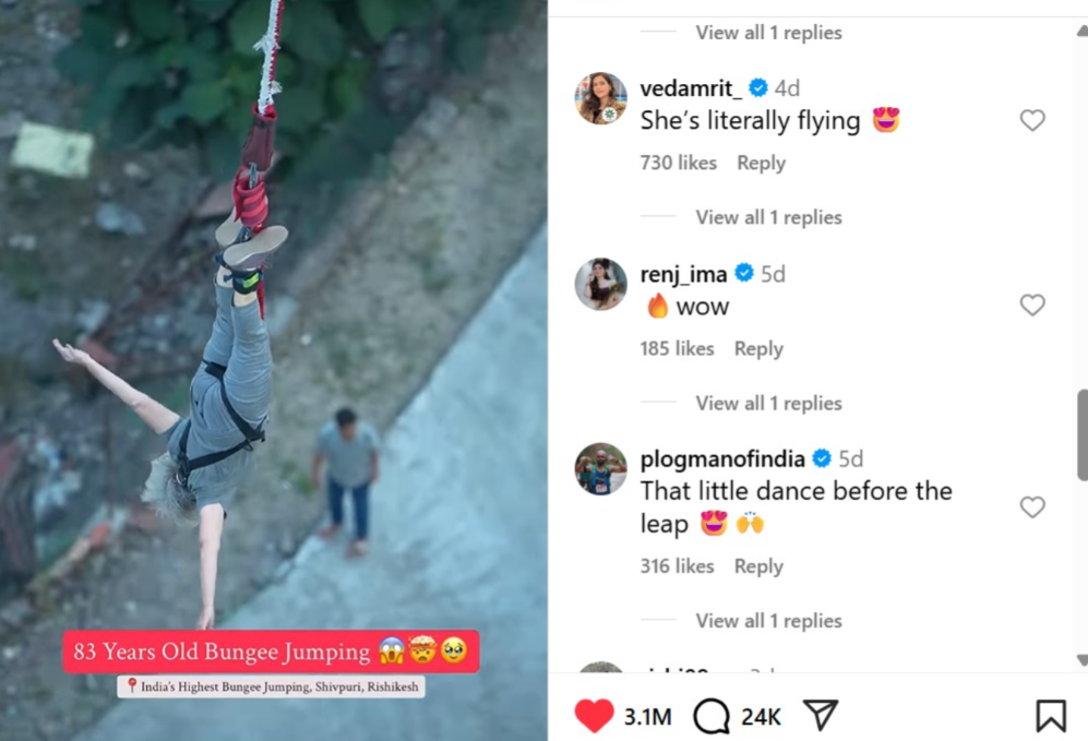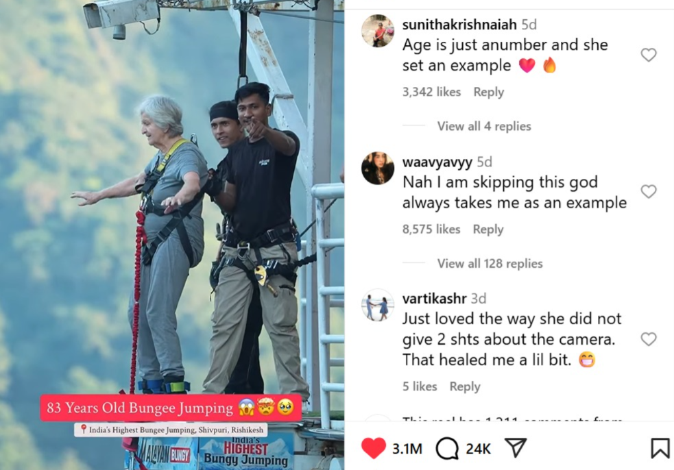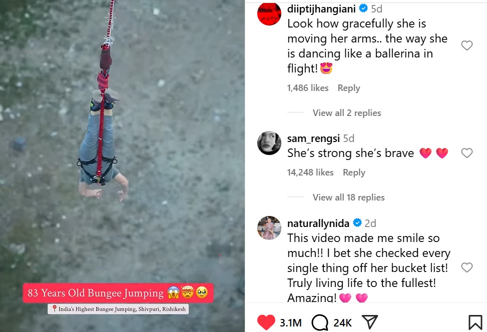 The video drew thousands of reactions from viewers who praised her strength, courage, and zest for life. Many highlighted her example as proof that age is just a number. Comments like ‘She’s literally flying’ and ‘This is the right age for adventure, nothing to lose’ reflected how her bravery and joy resonated with people of all ages.