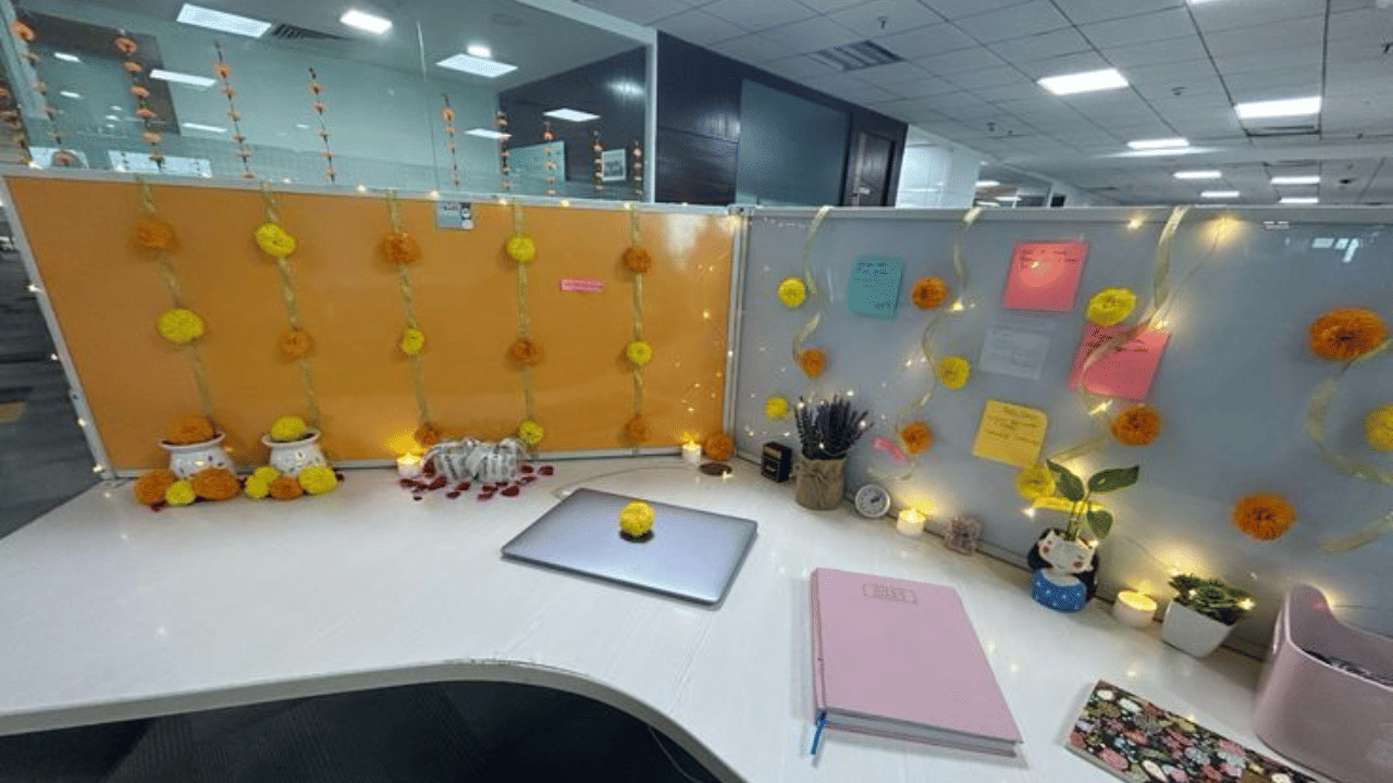 A decorated desk is more than just a spot for files—during Diwali, it’s a source of joy, community, and celebration. These easy and trendy ideas will help you turn your workspace into a festive haven that inspires you all season long. This festive season, don’t forget to decorate you office or workplace for Diwali with these inspiration images and videos!