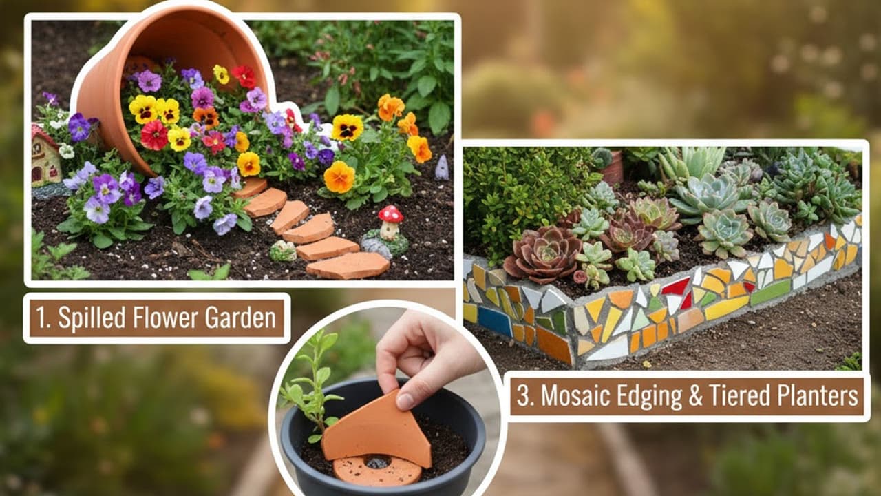 Small Broken Pot Garden Ideas: Reuse broken pots instead of throwing them away. Make mini fairy gardens, multi-level planters or vertical wall decor with these. Their pieces can also be used for drainage in new pots or for mulching the soil.
