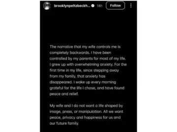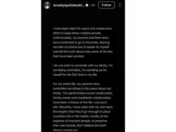 The post comes amid reports of tensions within the extended Beckham family, including claims that Brooklyn and other family members have blocked each other on social media. The Beckhams have yet to issue an official statement in response.