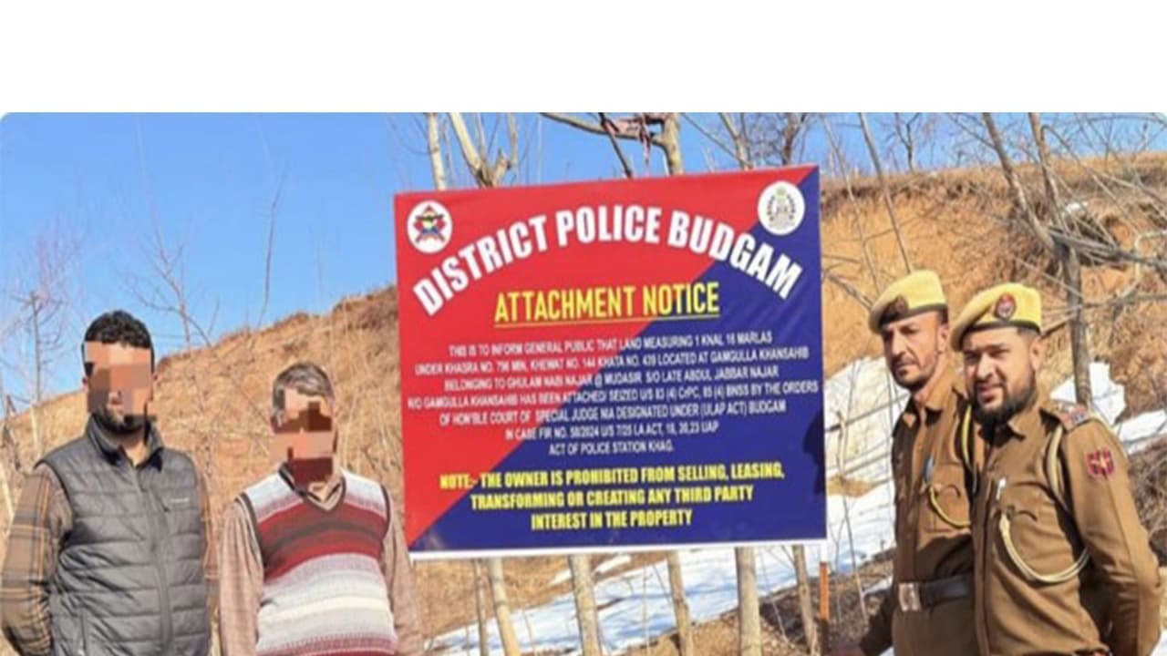 Budgam Police attached over one kanal of land belonging to terror operative Ghulam Nabi Najar under UAPA and BNSS. This action is part of a wider crackdown on terror support networks operating from Pakistan and PoK in the district.